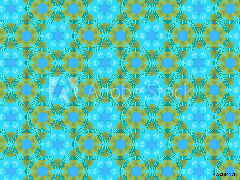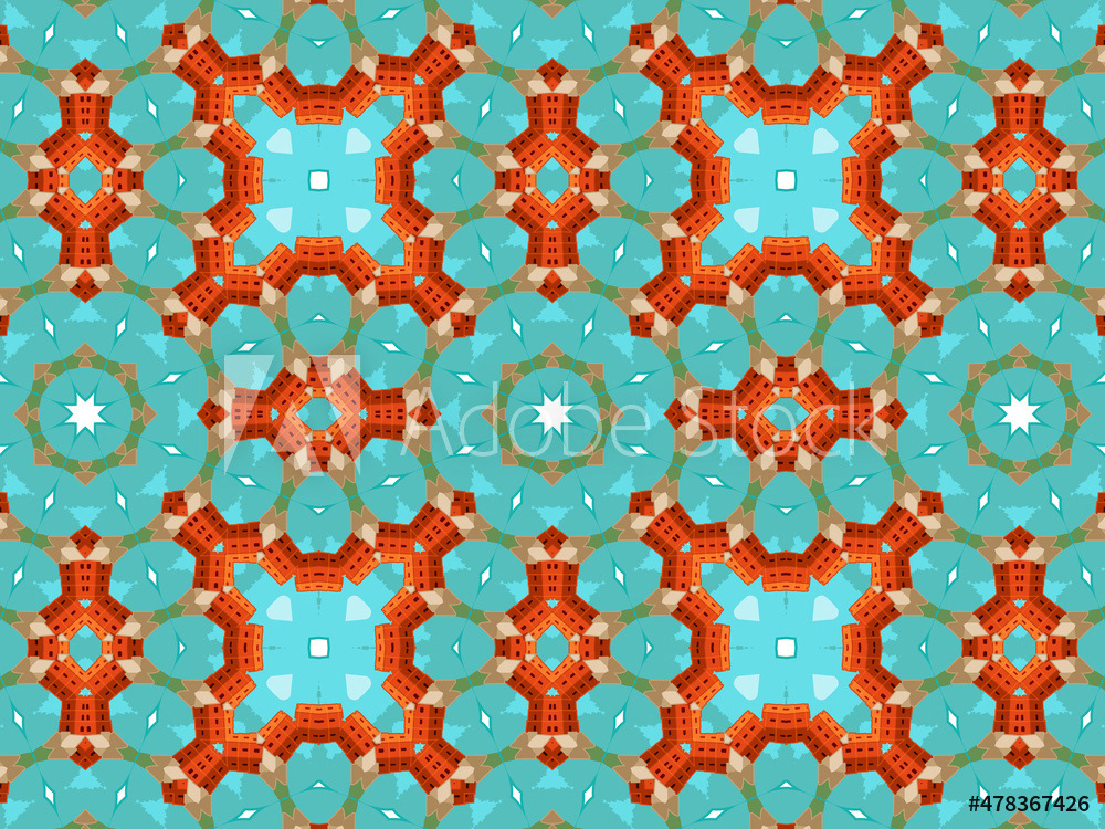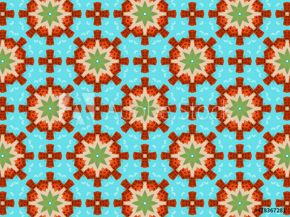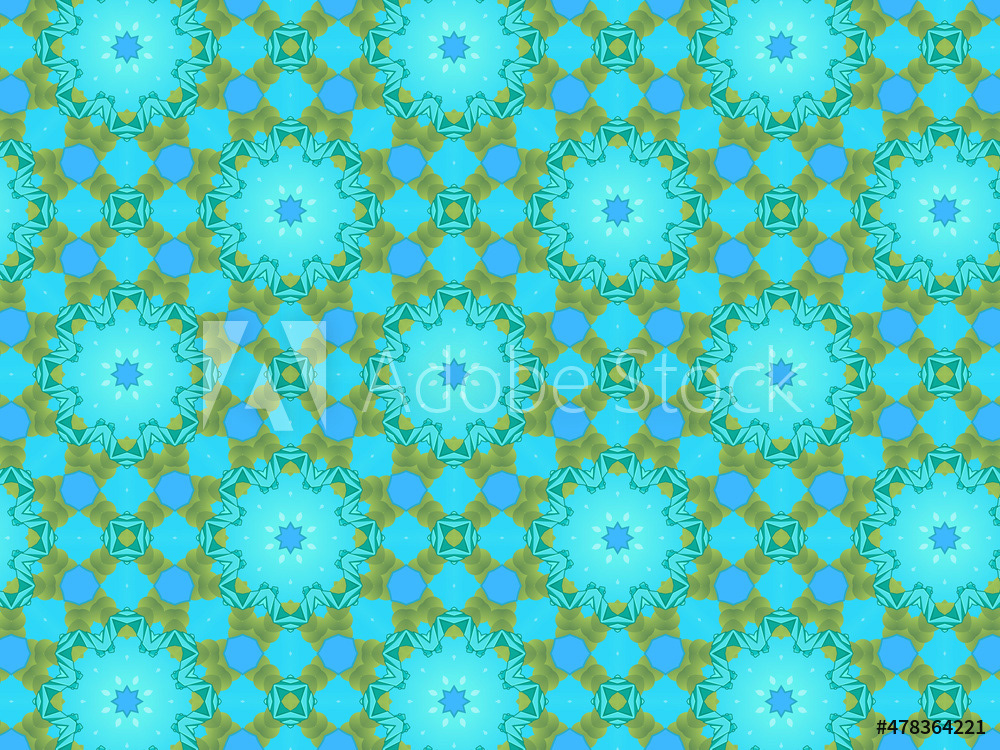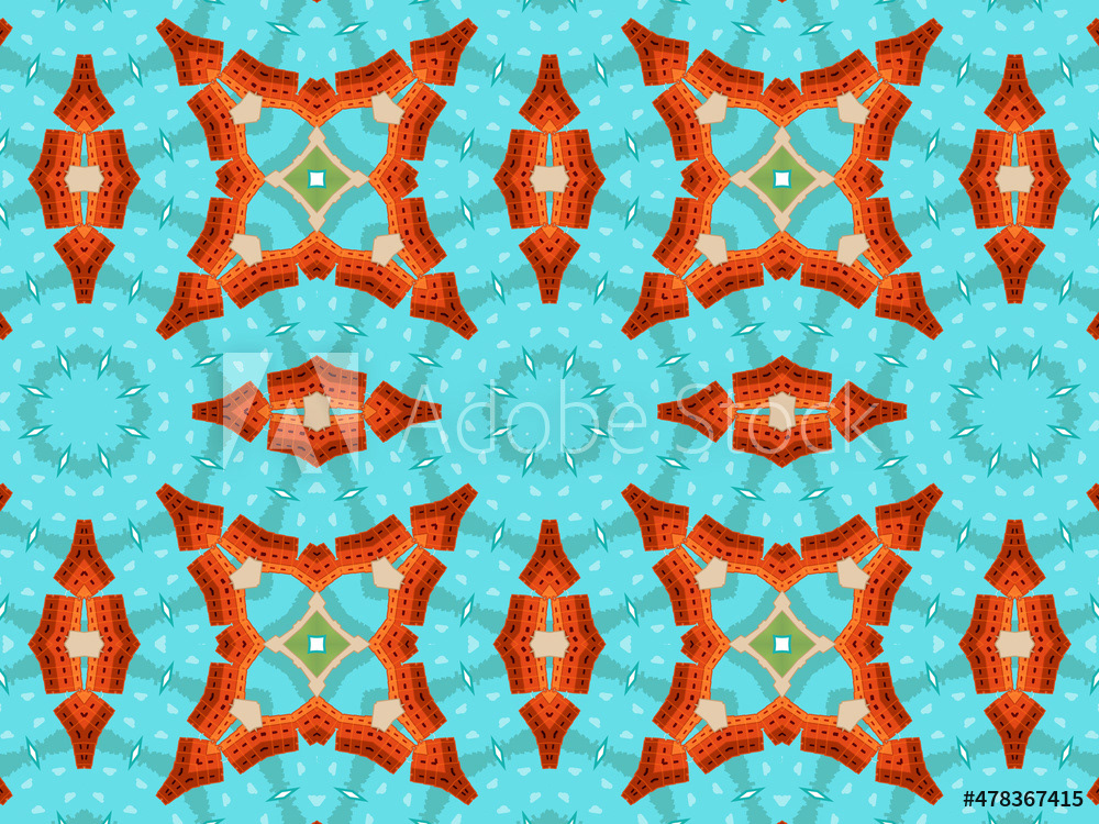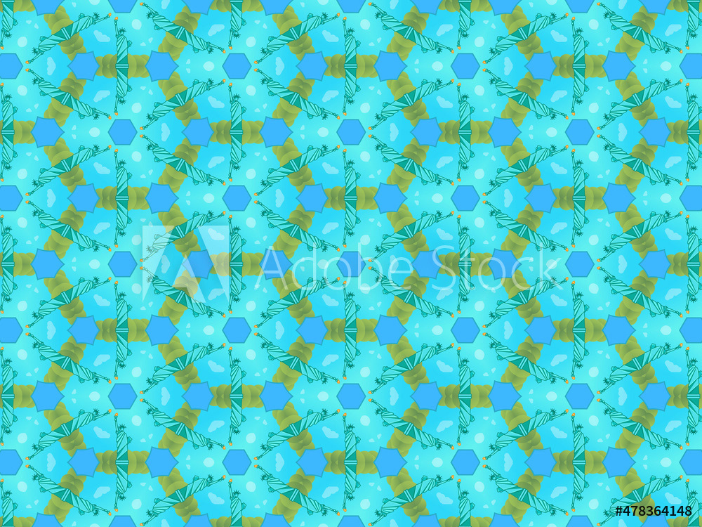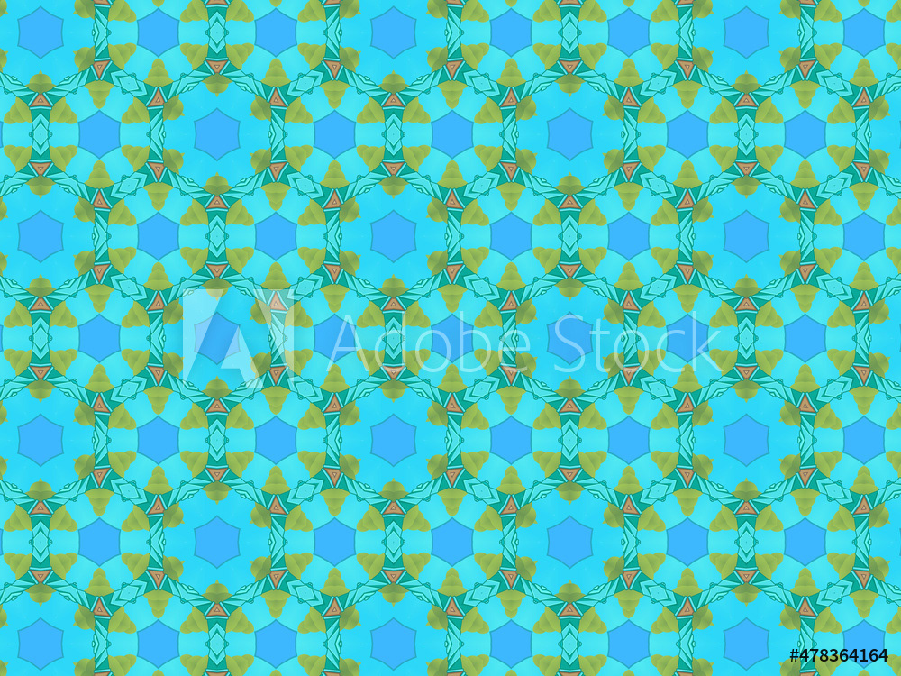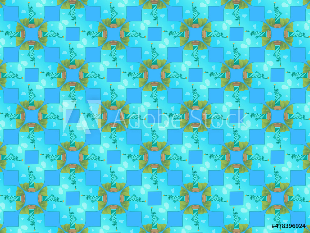 Modern and sophisticated kaleidoscopic surface patterns in blue, green and terracotta colors. All patterns in this collection are based on my illustrations from a personal project, one with the Statue of Liberty in New York, and another with the Gediminas Tower in Vilnius.