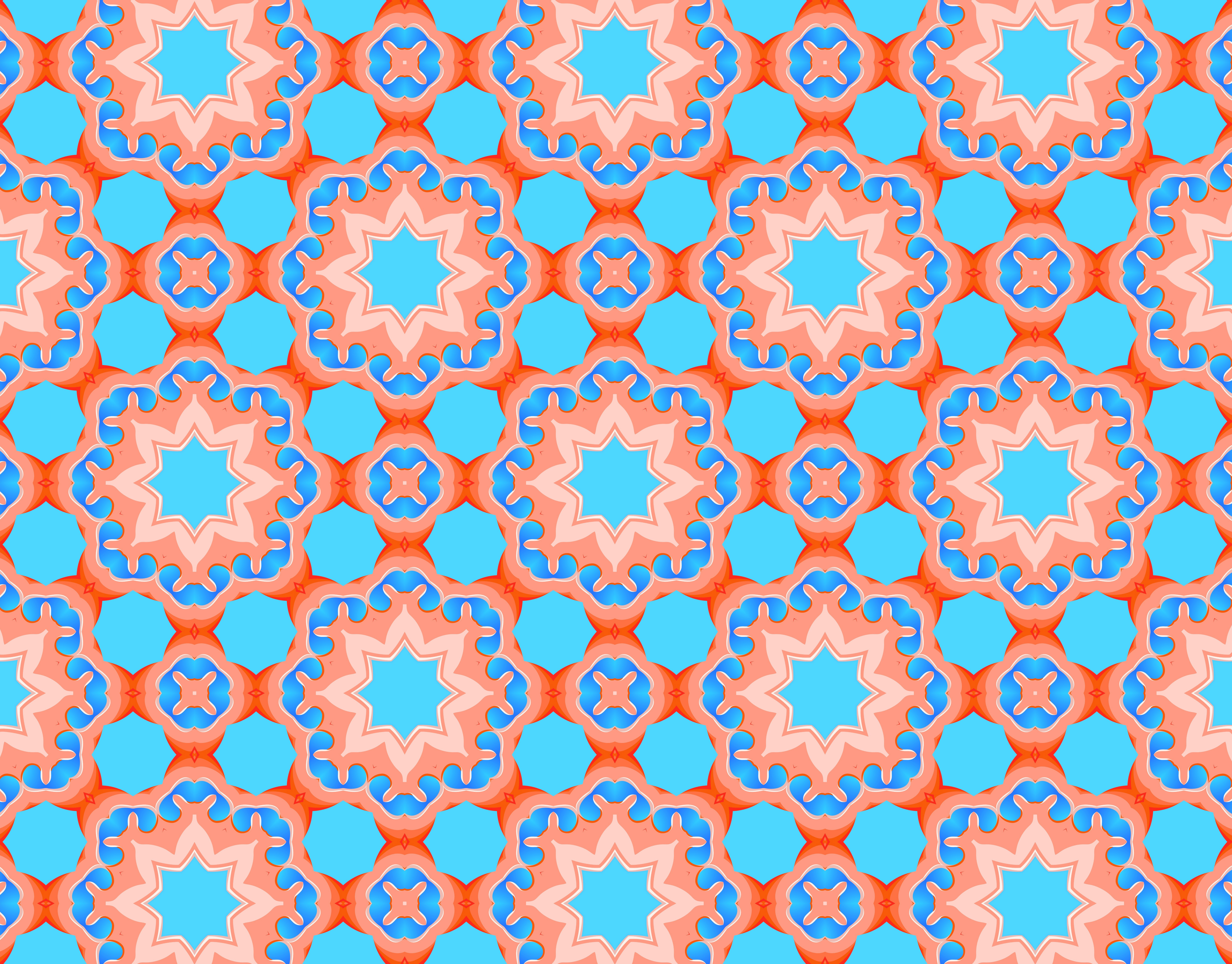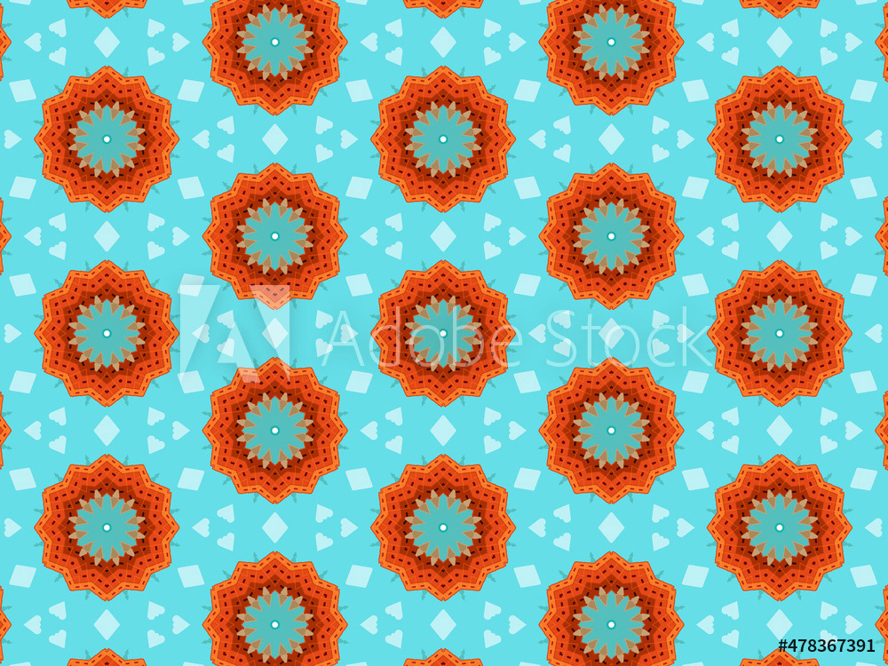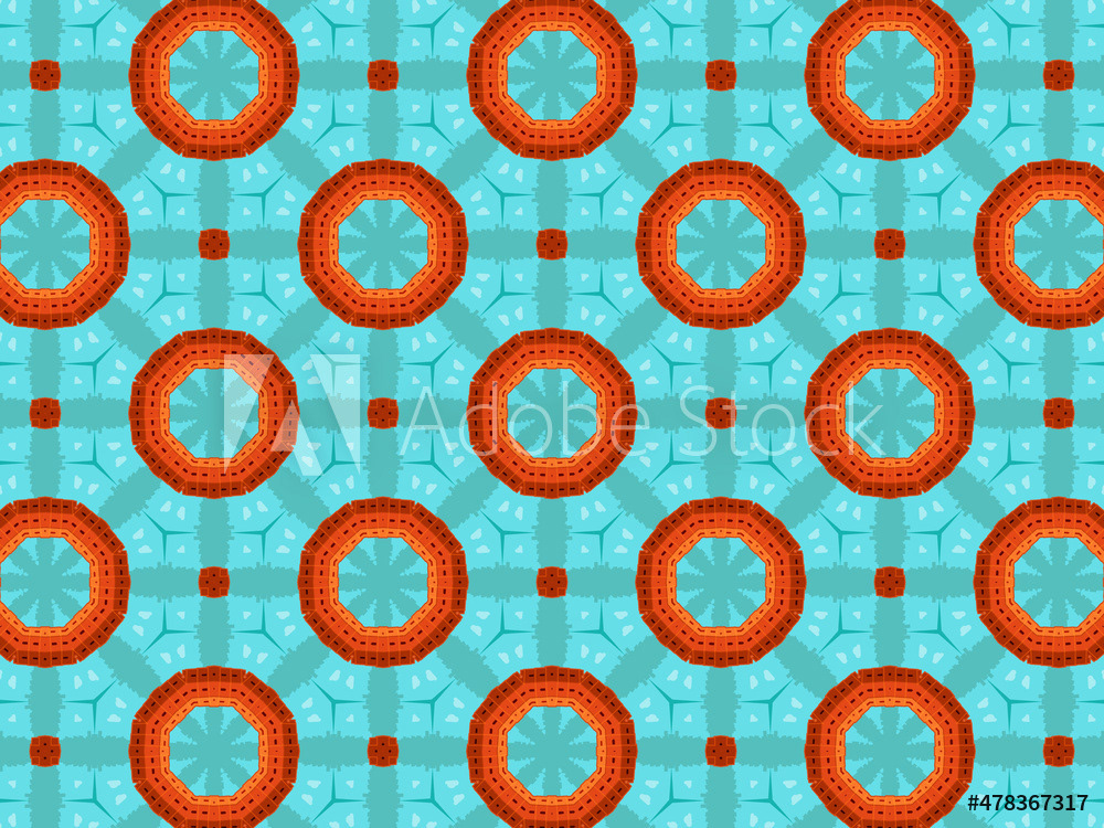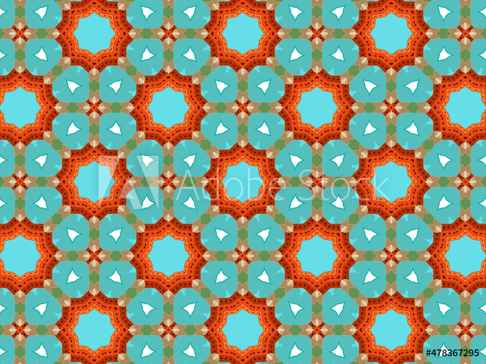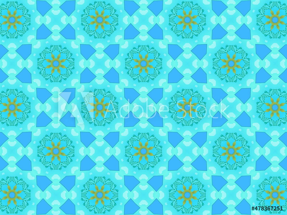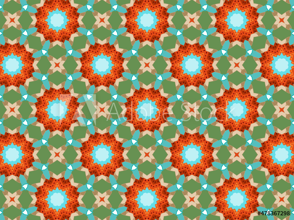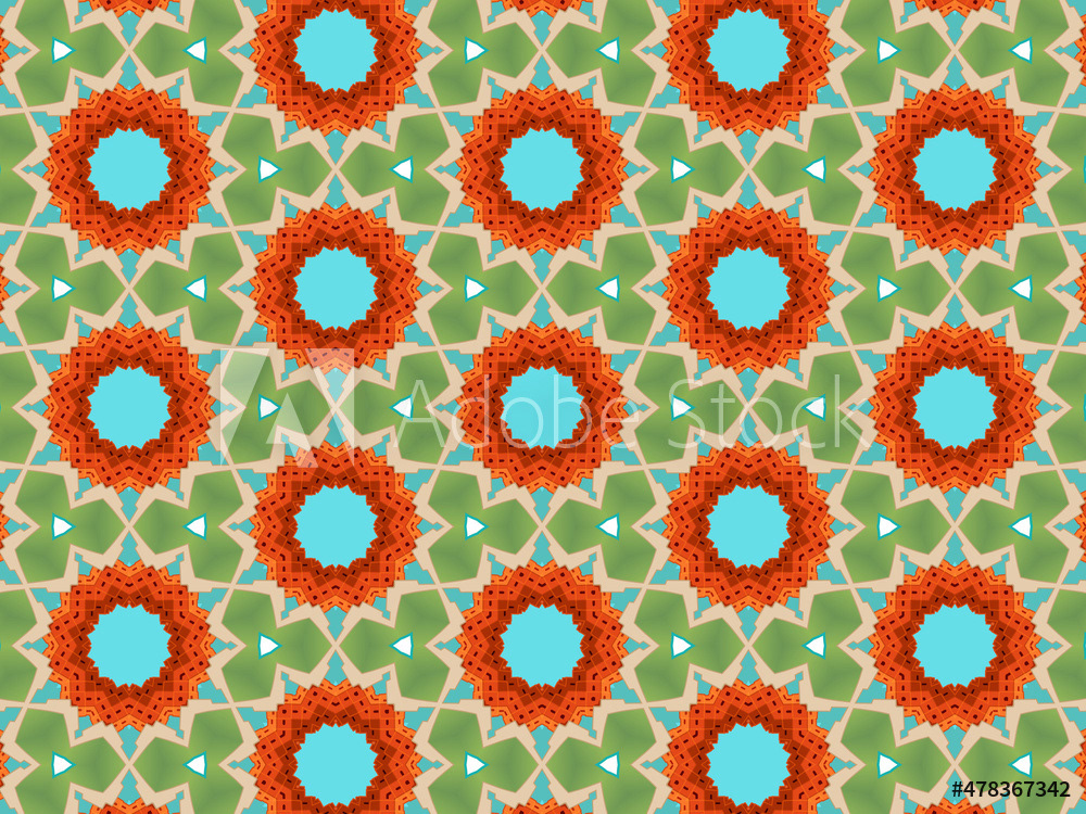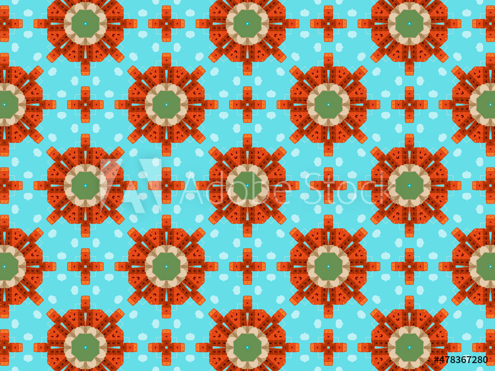 Modern and sophisticated kaleidoscopic surface patterns in blue, green and terracotta colors. All patterns in this collection are based on my illustrations from a personal project, one with the Statue of Liberty in New York, and another with the Gediminas Tower in Vilnius.
