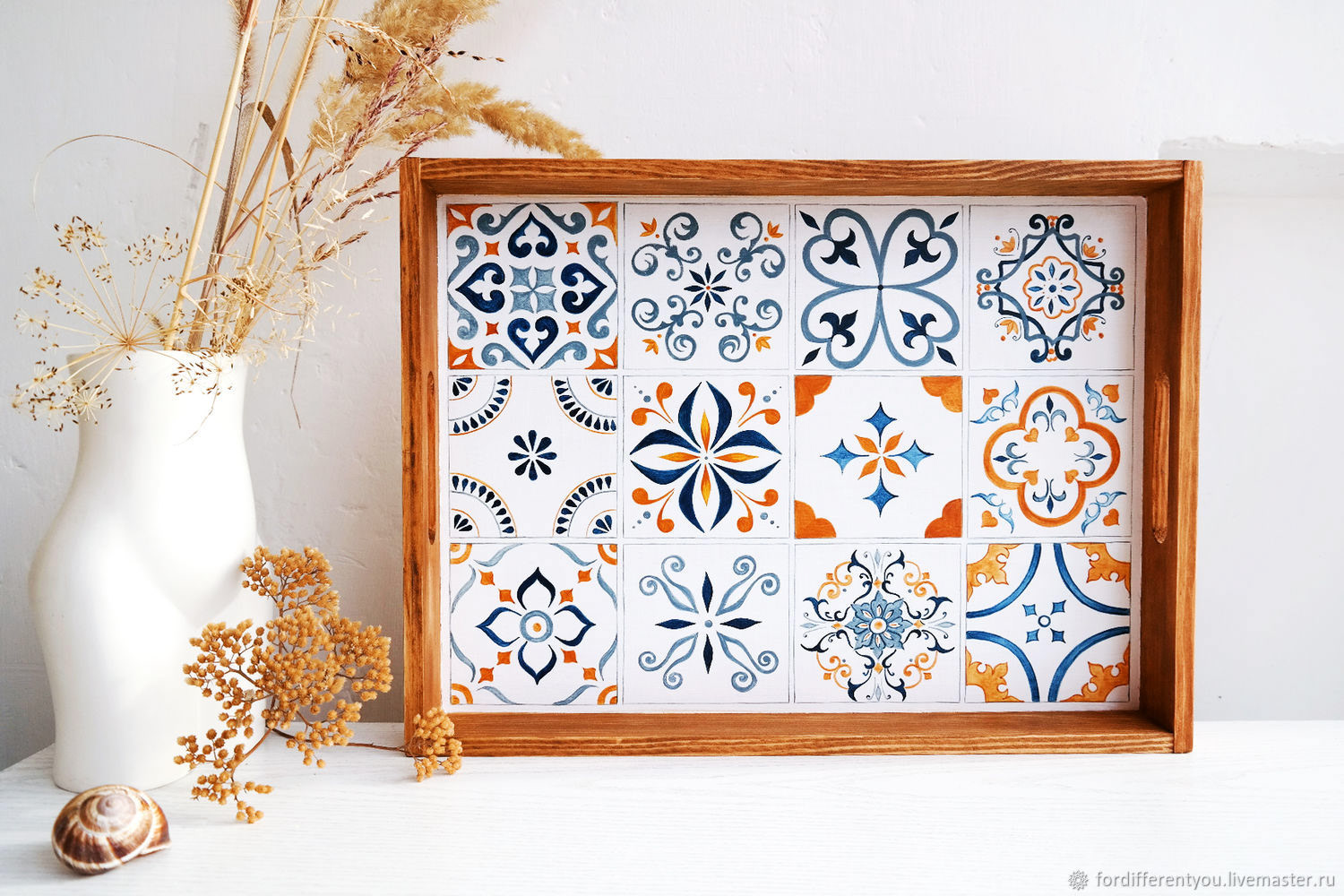 This project started as an idea of breakfasts in bed and a beautiful handmade serving tray with ceramic tiles. I searched the internet and stumbled upon this painted tray.