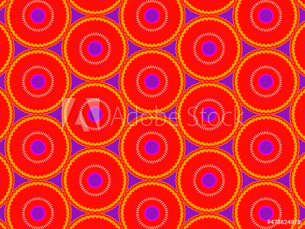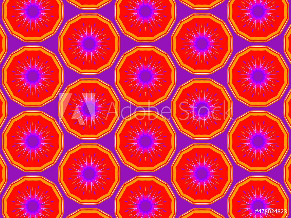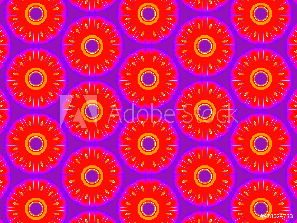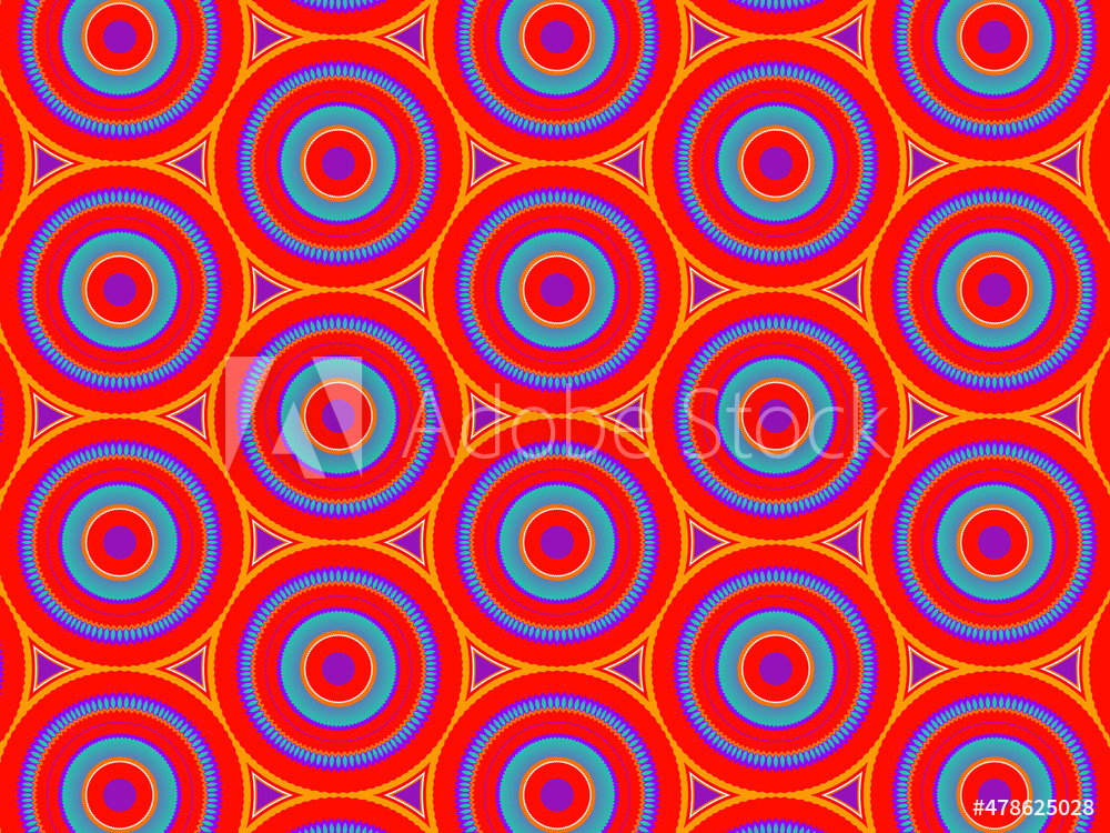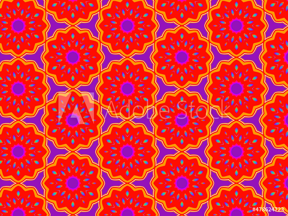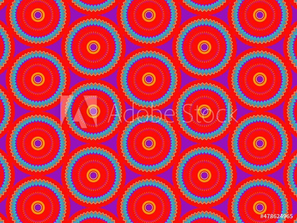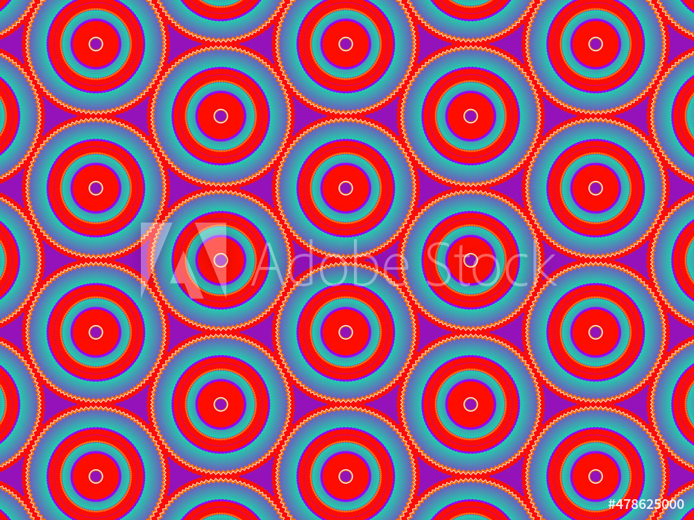 Colorful and vibrant repeating surface pattern in red, purple, teal and blue. Energetic, hypnotic and positive. Concept of passion, sex appeal, love and enchantment.