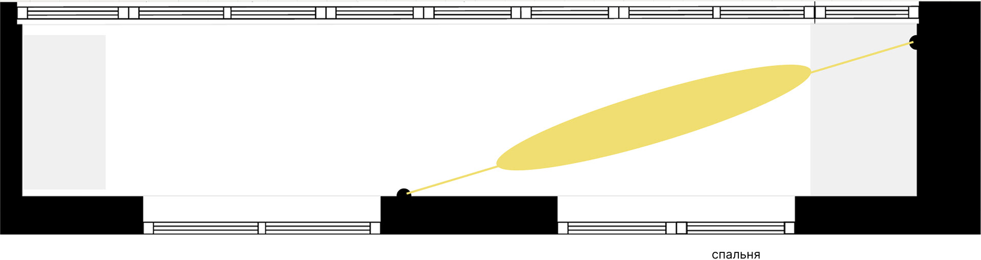 По техническим требованиям крепления гамака определила практически единственный приемлемый вариант размещения:
