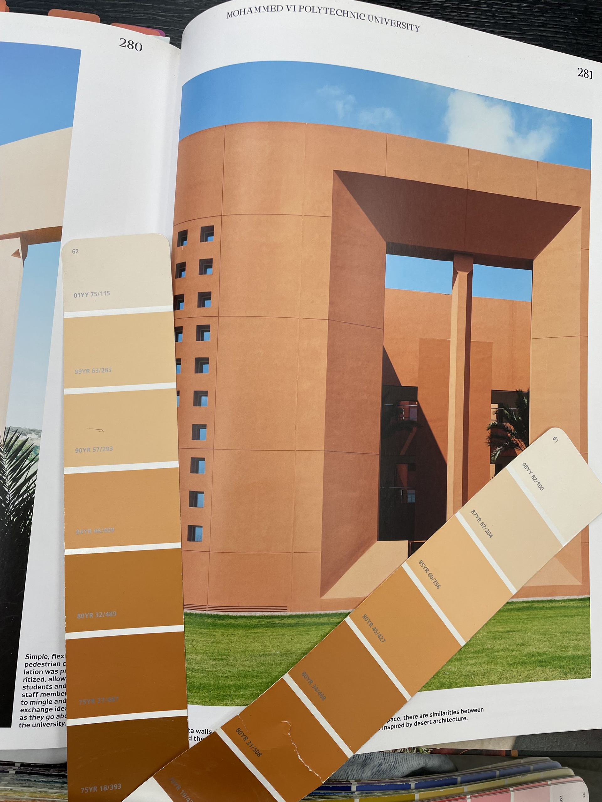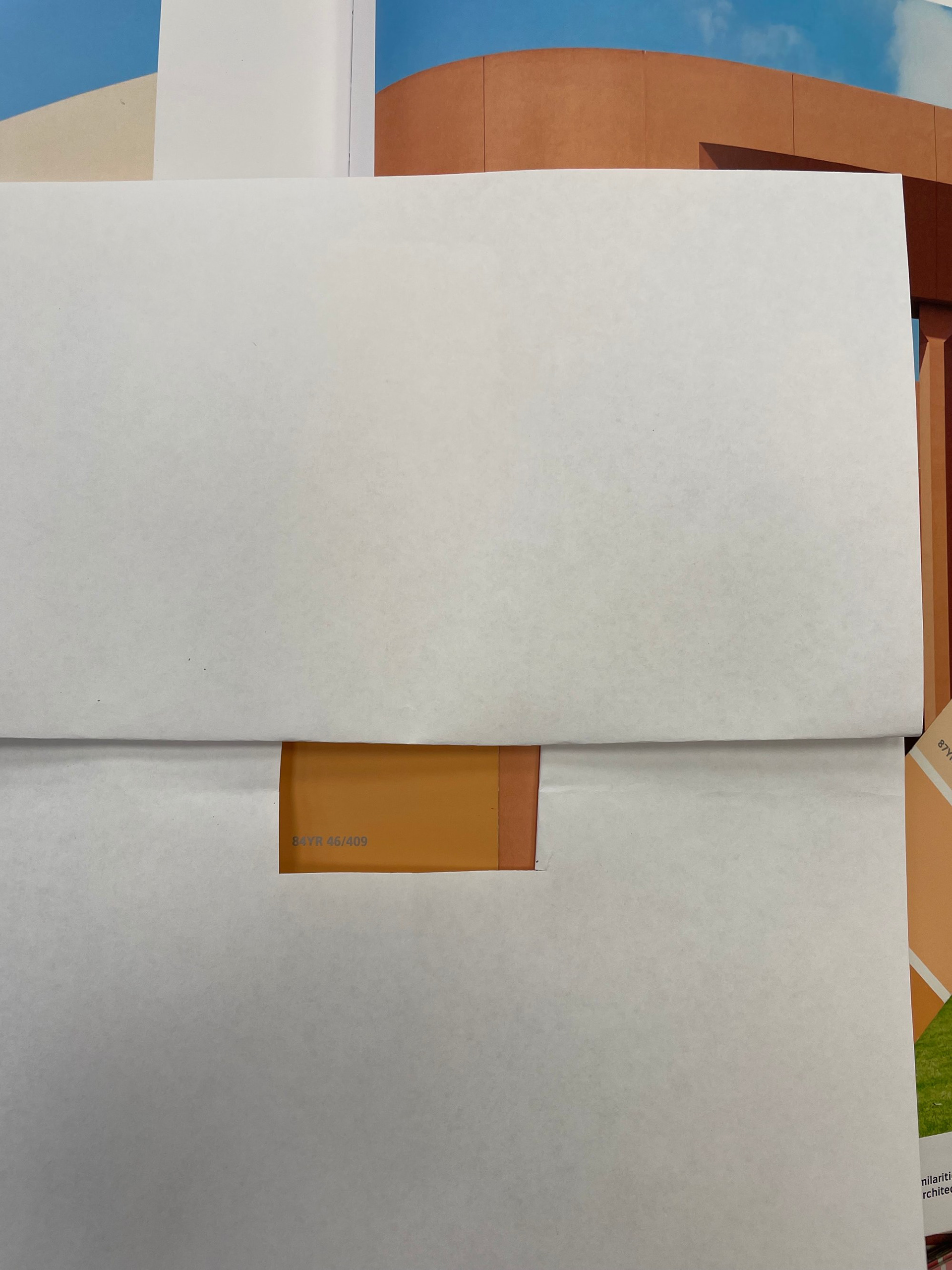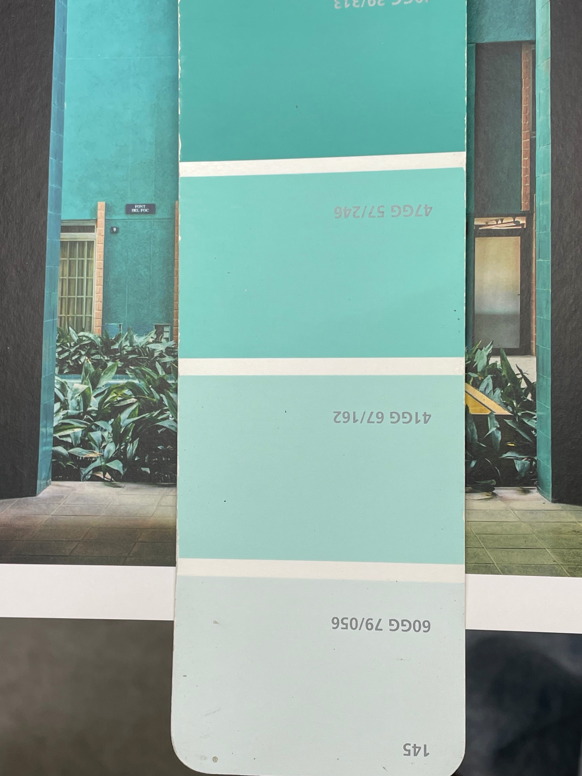 На этом этапе у меня было две цветовые "константы", к которым нужно было подобрать цвет стен: ковролин и старая деревянная вагонка, которую было решено пока не менять, как и окна. Из забавного: для подбора цвета я приложила ковролин к вагонке, сверху расположила книгу о работах своего любимого архитектора – Рикардо Бофилла – и полистала страницы с фото. Так у меня определились фавориты.