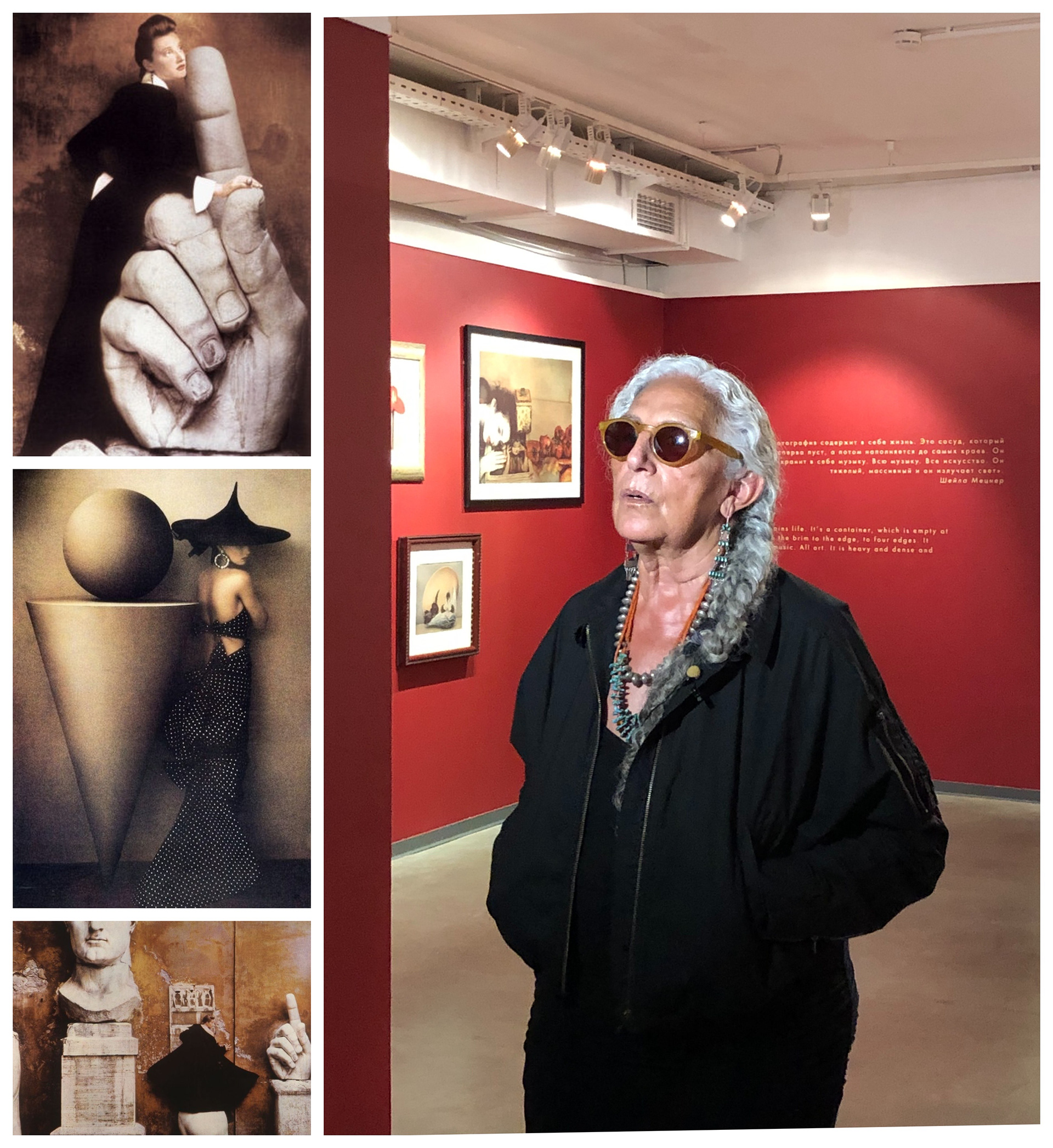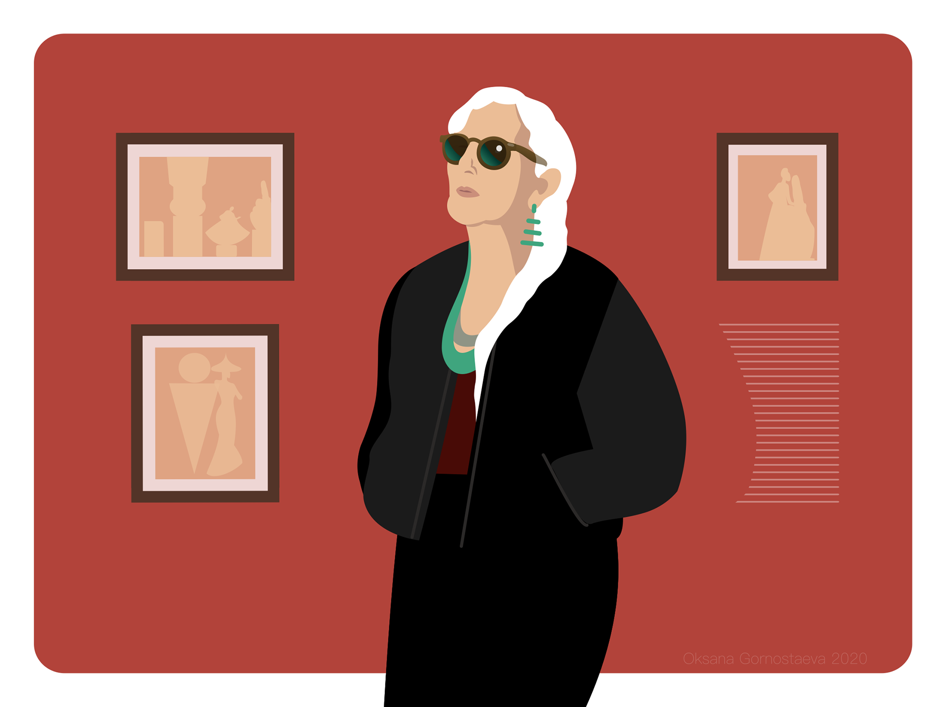A flat style portrait of Sheila Metzner, the iconic American photographer, as seen at her exhibition at Moscow's
